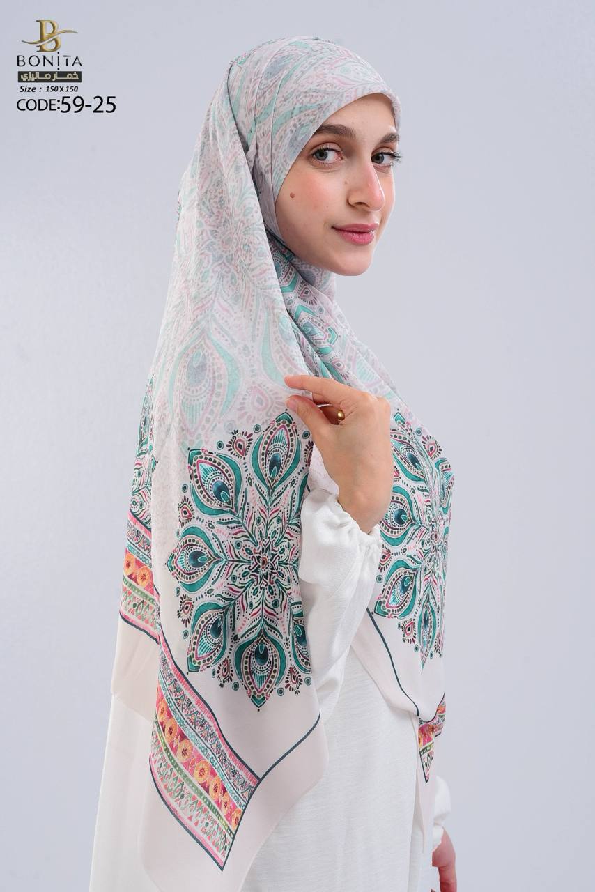 هذا الخمار الماليزي هو قطعة جميلة وأنيقة، مصنوع من قماش كريب شيفون عالي الجودة. القماش خفيف وناعم وقابل للتنفس، مما يجعله مثاليًا للاستخدام اليومي أو للمناسبات الخاصة. يأتي الخمار بحجم مربع **59" × 59"**، مما يوفر تغطية وراحة واسعة.